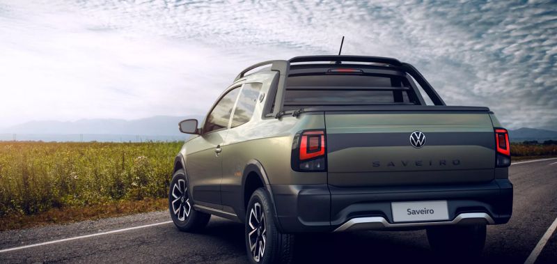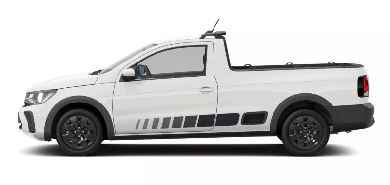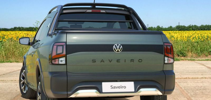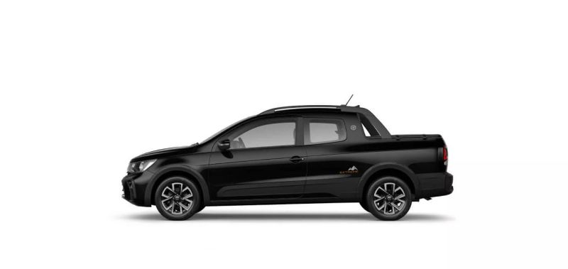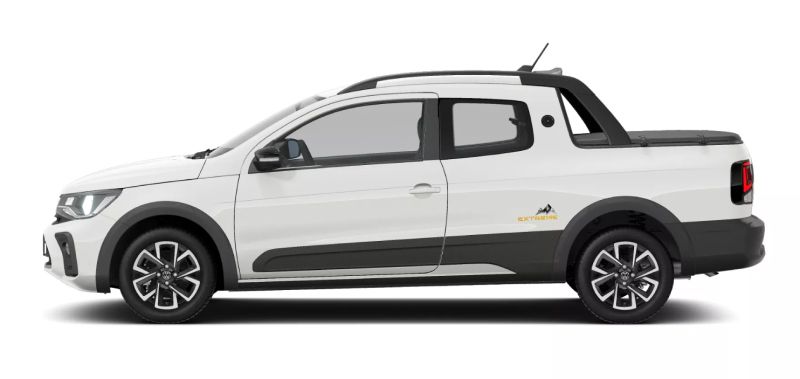 La tapa de la caja conecta las nuevas luces con un diseño oscurecido en la parte de atrás, además de la franja horizontal negra mate que destaca la escritura de Saveiro (Exclusiva para la versión Extreme).